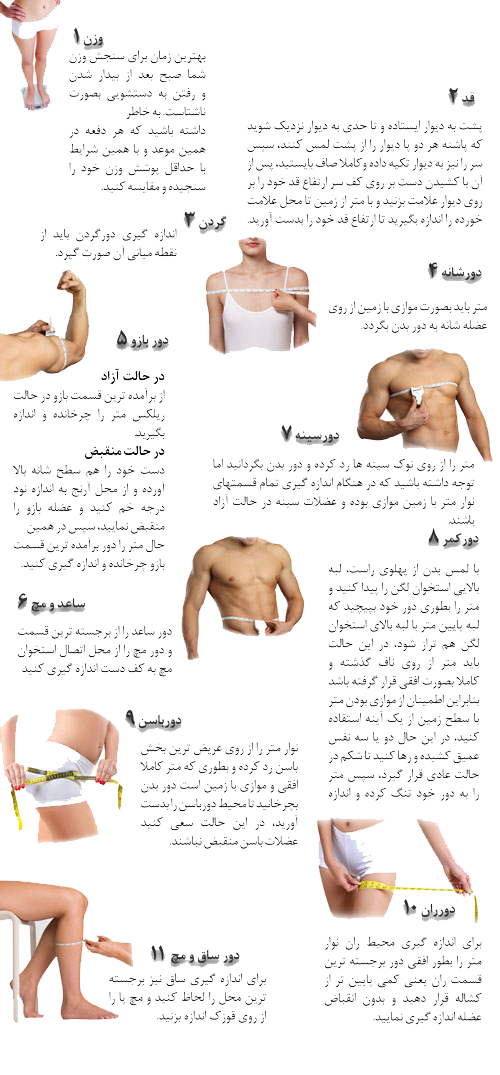 سلام ، من مربی تو هستم و میخوام با وضعیت تو آشنا بشم. لطفا در حالت ریلکس سایز همه قسمتها رو بگیر و اینجا بنویس